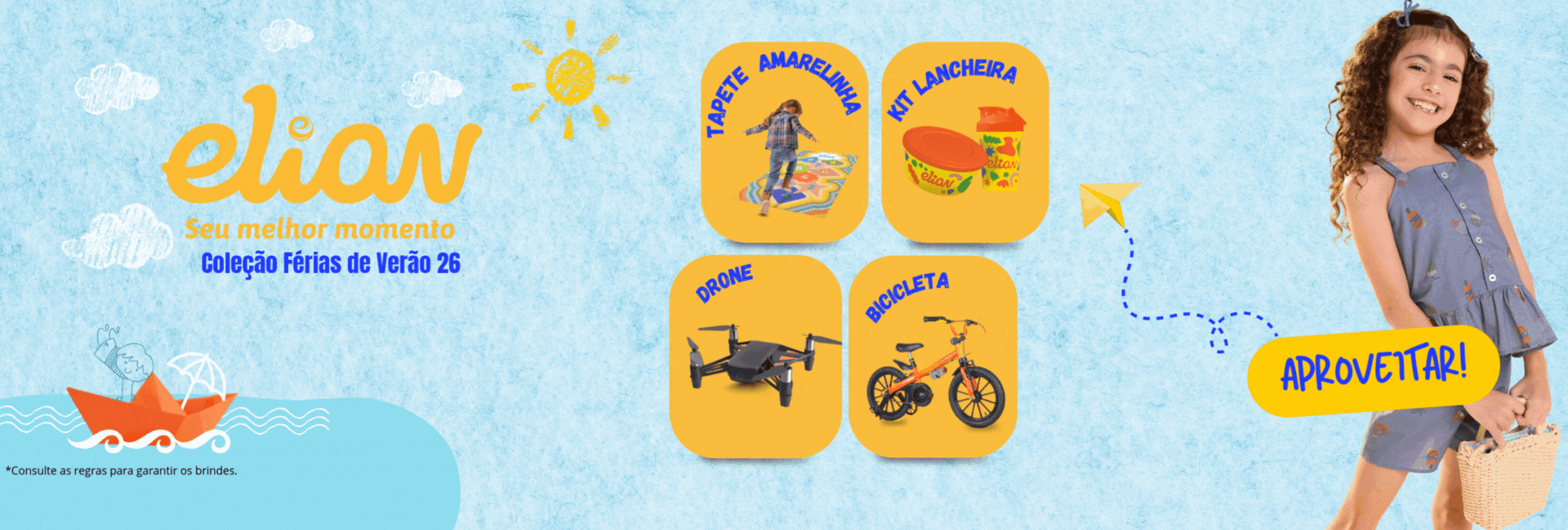 Presente em todas as fases da infância, a Elian é uma marca de moda infantil que acompanha os melhores momentos das crianças. Com um mix completo do RN ao juvenil, oferece linhas pensadas para cada fase: Elian Baby, Elian Fun, Elian Beach, Hora do Soninho e os básicos essenciais Life Colors.